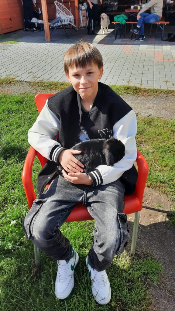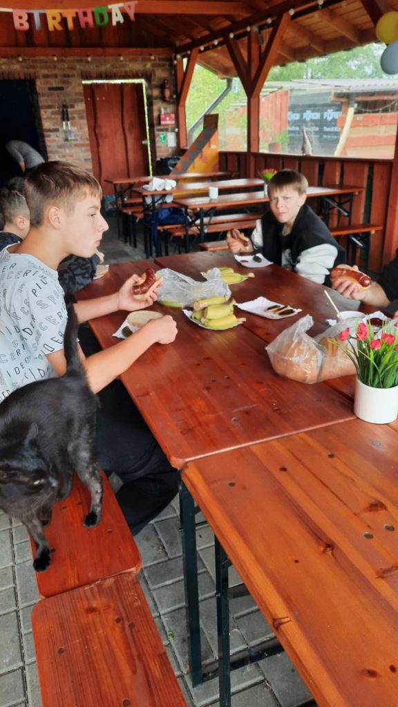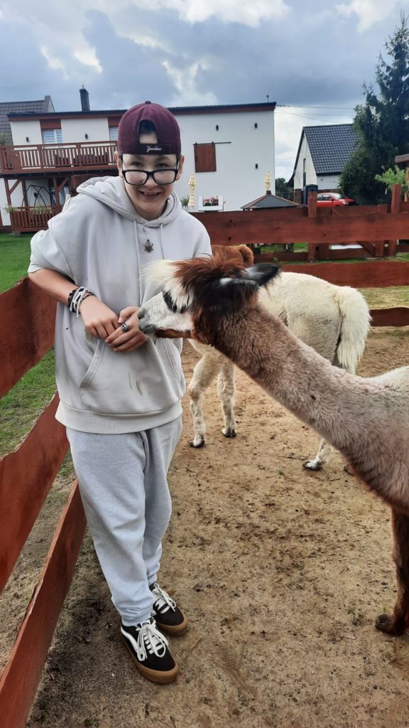 i otworzyć się na otaczający ich świat. Alpaki  wspomagają budowanie samooceny, uczą empatii oraz odpowiedzialności. W alpakoterapii wychowankowie mają bezpośredni kontakt z alpakami, które są nie tylko łagodne, ale bardzo spokojne. Dotyk alpak według młodzieży był bardzo przyjemny i kojący. Chłopcy porządkowali zagrody, wozili drewno, karmili alpaki, głaskali a na koniec spotkania biesiadowali przy grillowanej kiełbasie .W tak miłej atmosferze ,pełnej nowych wrażeń i doświadczeń chłopcy powrócili do placówki żyjąc już kolejnym wyjazdem.