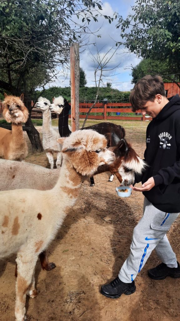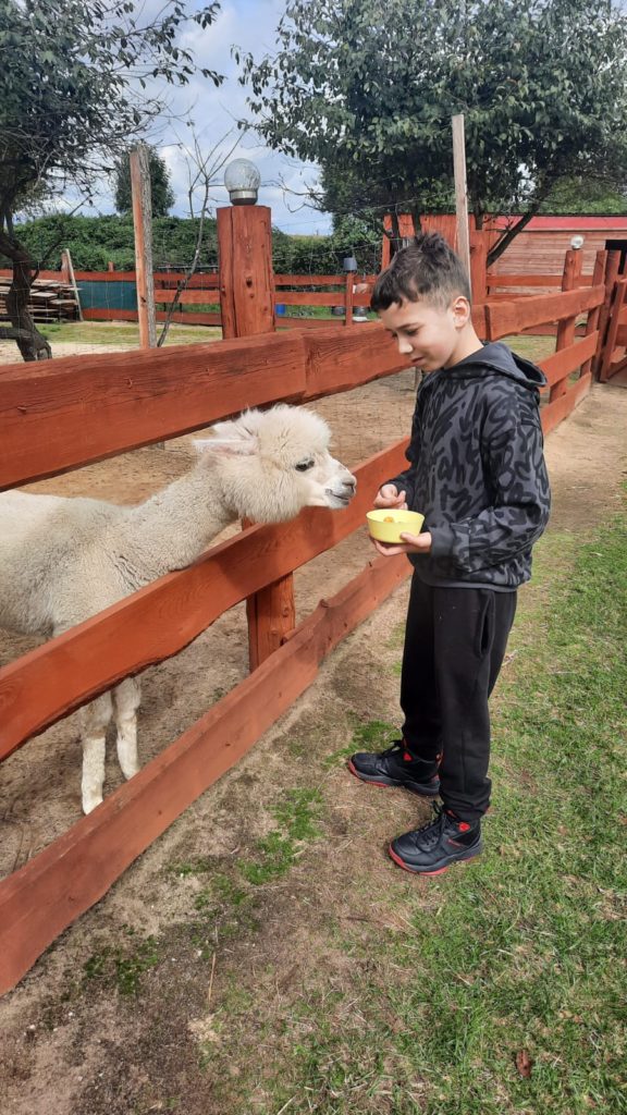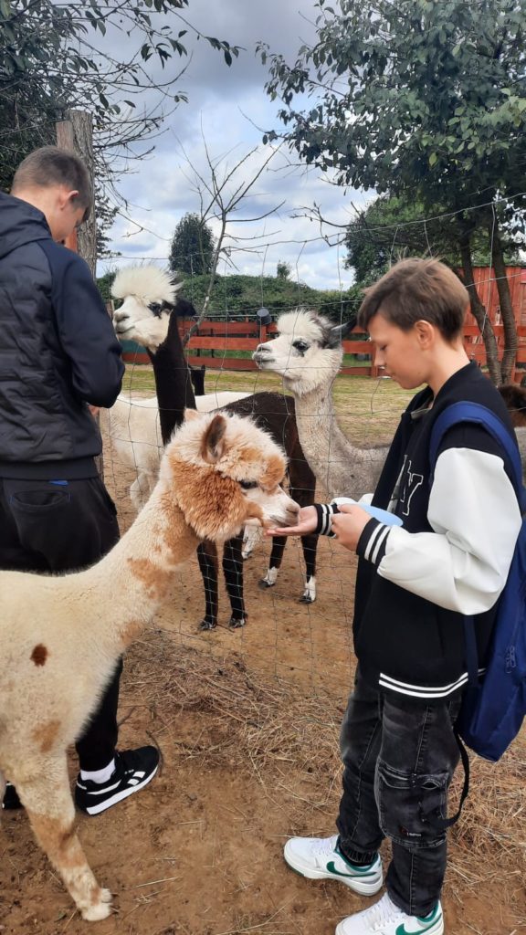 Pod opieką Pani Doroty grupa chłopców wyjechała do Rancha Alpak w Prawikowie. Chłopców przywitała właściciela alpak Pani Dorota. Przekazała chłopcom wiele cennych informacji dotyczących życia alpak. Obcowanie z alpakami