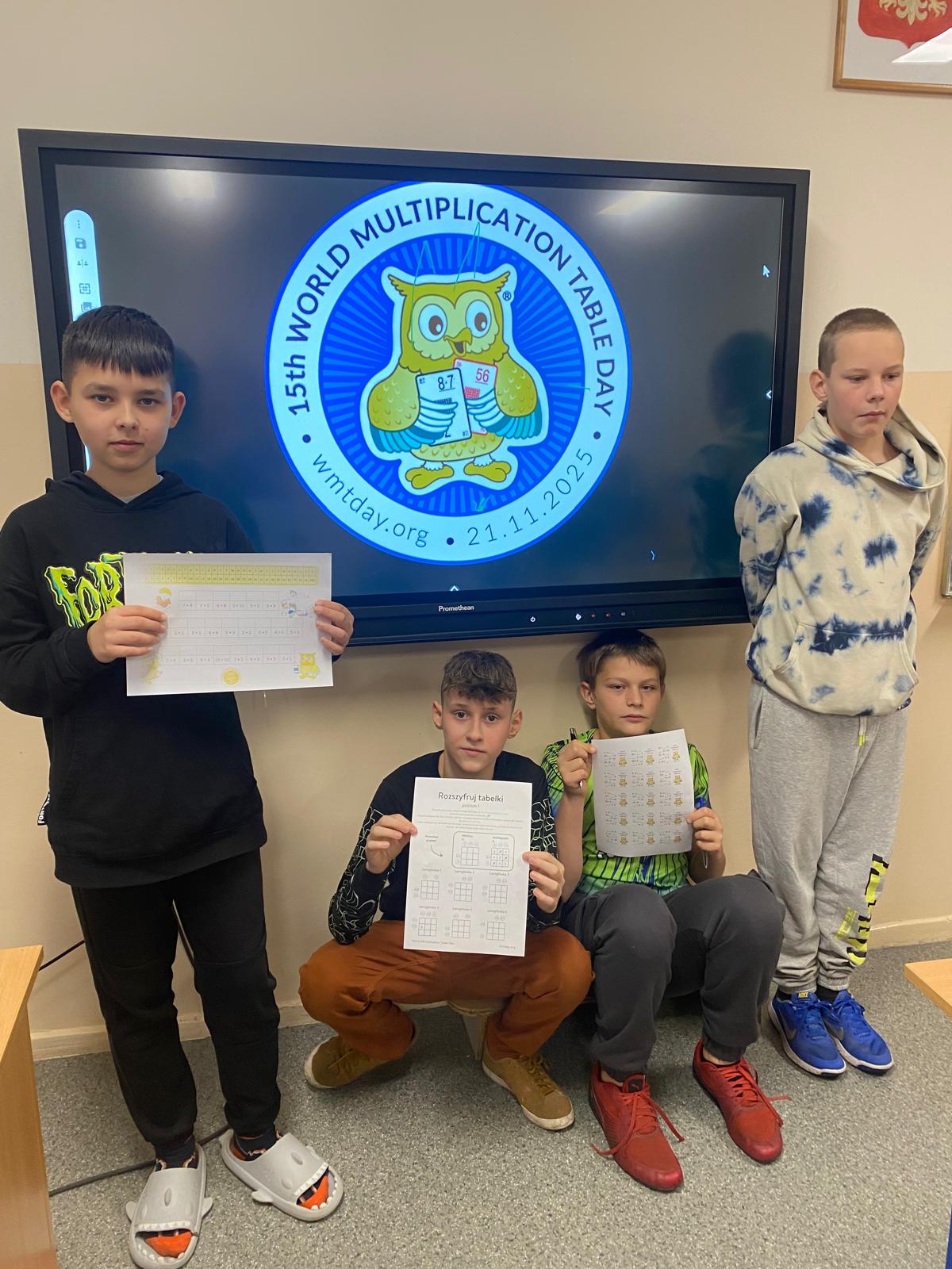 W naszej szkole już po raz dziesiąty świętowaliśmy XV Światowy Dzień Tabliczki Mnożenia! Od rana w całym budynku unosiła się radosna, matematyczna energia. Uczniowie – młodsi i starsi – z zapałem podejmowali kolejne wyzwania, pokazując, że tabliczka mnożenia może być świetną zabawą. Najwięcej emocji wzbudził konkurs Mistrz Tabliczki Mnożenia, w którym uczestnicy walczyli o prestiżowy tytuł najszybszego rachmistrza w szkole. Dużo śmiechu przyniosły także pełne adrenaliny wyścigi w budowaniu matematycznej piramidy, gdzie liczyła się nie tylko szybkość, ale i dobra znajomość tabliczki mnożenia. Dodatkową atrakcją były matematyczne stacje zabaw, m.in. losowanie „szczęśliwych przykładów”, gra „Zgadnij iloczyn” oraz kreatywne kolorowanki liczbowe, które szczególnie przypadły do gustu młodszym uczniom. To był dzień pełen śmiechu, pomysłowości i radosnej rywalizacji. Udowodniliśmy,