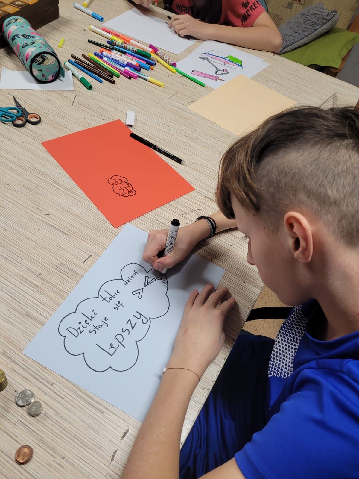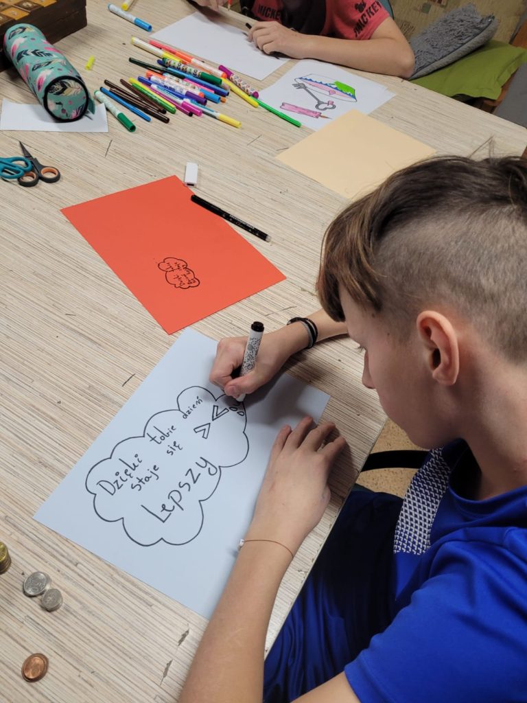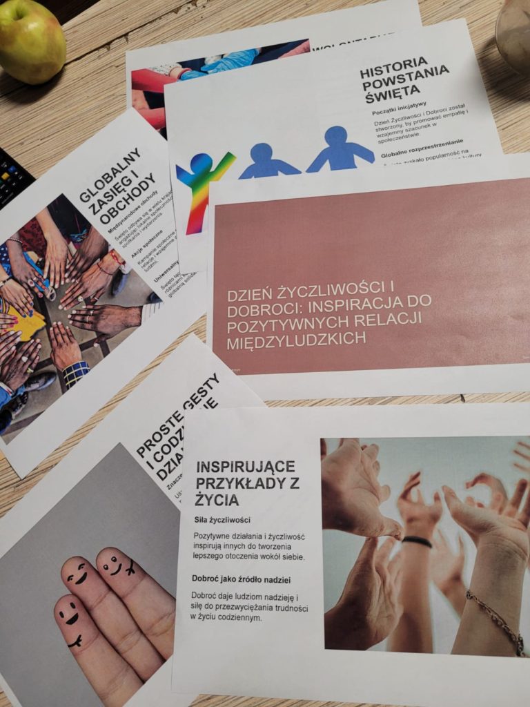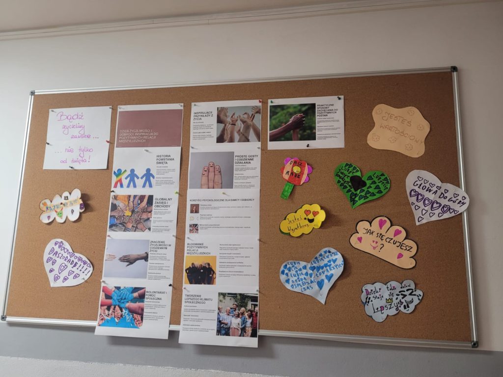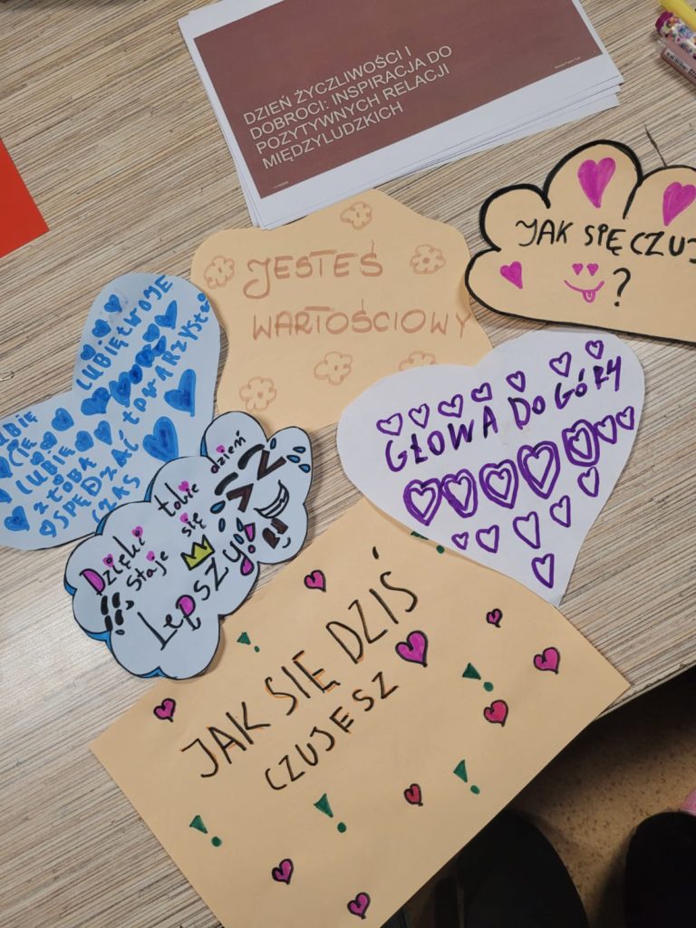 Dzień Życzliwości to międzynarodowe święto obchodzone 21 listopada, które promuje pozytywne emocje, dobre uczynki i wzajemną życzliwość. Obchodzi się go w ponad 180 krajach na świecie, a jego głównym celem jest zachęcanie do życzliwości na co dzień, poprzez drobne gesty, takie jak uśmiech, dobre słowo czy pomoc. Wychowankowie i wychowanki w Placówce w tym radosnym dniu wręczali sobie wzajemnie karty z miłymi słowami, które przygotowywali podczas zajęć. Udowodnili tym samym, że w każdym z nich drzemią niewyczerpane pokłady dobra i że potrafią okazać bezinteresowną życzliwość drugiemu człowiekowi. Na zakończenie dnia powstała gazetka tematyczna.