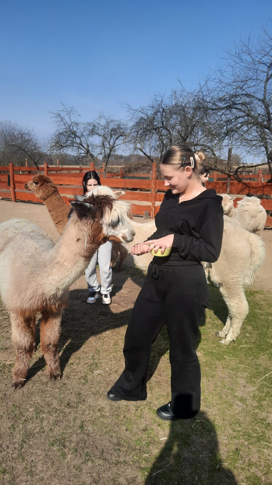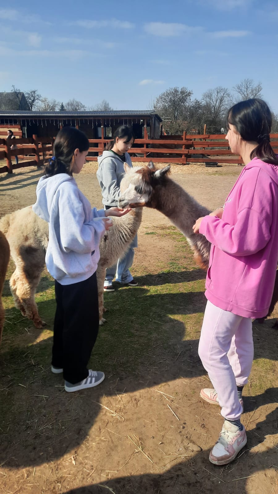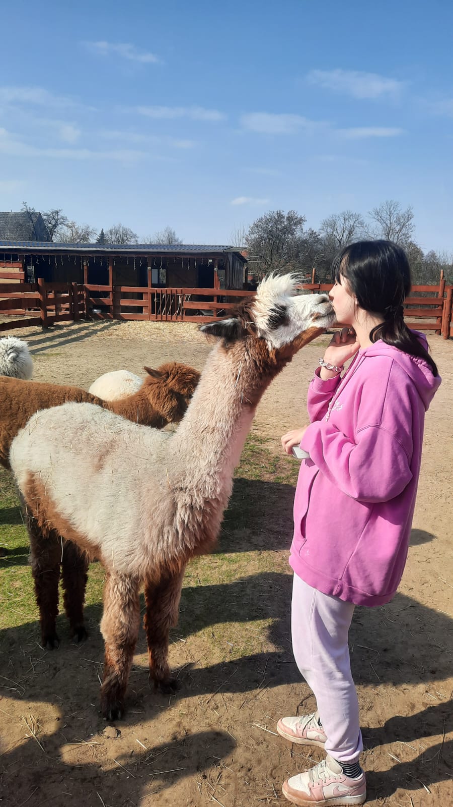 11 marca 2026r. w  słoneczne , prawie  wiosenne  południe  Rancho Alpak odwiedziła większa grupa młodzieży. Takie spotkania łączą edukację z elementami alpakoterapii , która pomaga w redukcji stresu, budowaniu empatii oraz nauce odpowiedzialności. Kilka dziewcząt po raz pierwszy miały kontakt z alpakami . Właścicielka rancha Pani Dorota  zapoznała wychowanki z zasadami kontaktu z alpakami. Bezpośrednia  relacja  polegała na karmieniu  specjalnie przygotowaną paszą lub marchewką oraz możliwością  pogłaskania i przytulenia zwierząt. Prelekcja edukacyjna  zaowocowała  przełamaniem bariery lęku , strachu . Pojawił się na ich twarzach uśmiech i zadowolenie. Taka forma współpracy jest możliwa w ramach prowadzonej  w Placówce innowacji pedagogicznej. Kontakt z alpakami uczy cierpliwości (zwierzęta te nie lubią gwałtownych ruchów) , odpowiedzialności za inną istotę oraz regulacji emocji – alpaki doskonale wyczuwają napięcie i stres człowieka. Wychowanki i wychowankowie zadbali także o prace porządkowe i estetyczne na terenie rancha. Jagoda z Julią sadziły do skrzynek kwiatki . Marlena z Wiktorią ,Leną i Patrycją sprzątały zagrody alpak. Chłopcy : Karol , Bartek ,Patryk ,Adrian przygotowywali miejsce na budowę kolejnych pomieszczeń dla alpak a Sebastian z Kacprem standartowo sprzątali zagrodę dla koni. Adam , który był dzisiaj nieobecny wykonał ołówkiem rysunek alpaki – prezent dla Pani Doroty. Czas relaksu zakończył się wyśmienitą pizzą i kiełbasami z grilla. To był doskonały  sposób na wyciszenie i kontakt z naturą.. To miejsce oferuje unikalne doświadczenia , które tak bardzo potrzebują nasi podopieczni. Wszystkim bardzo serdecznie dziękujemy za wzorową postawę . Jesteście naprawdę wspaniali.