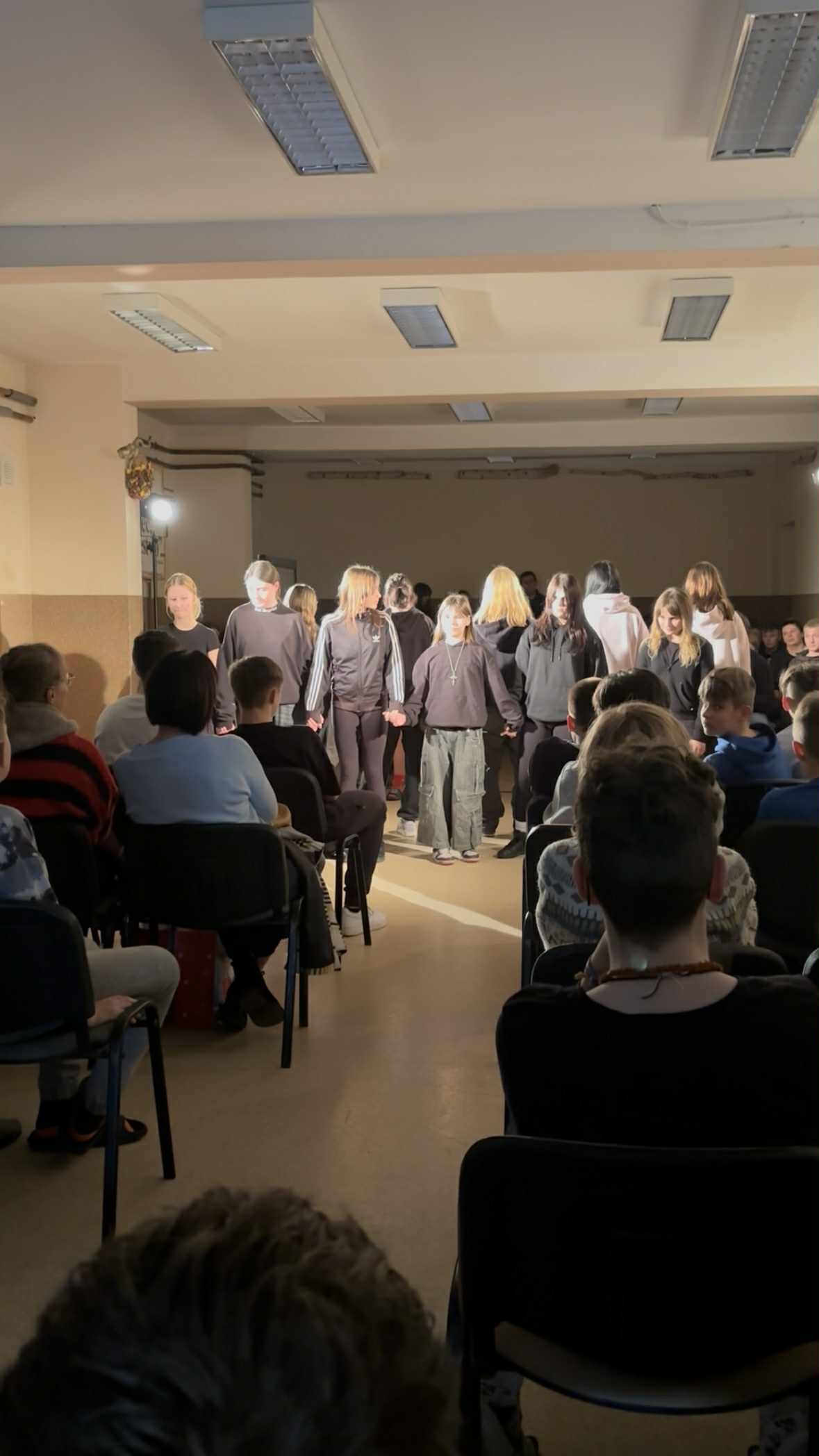 W Młodzieżowym Ośrodku Wychowawczym Nr 2 odbył się pokaz spektaklu „Jestem”, powstałego w ramach projektu „Polskie Heroski”, realizowanego w naszym ośrodku przez teatr ,,Układ Formalny’’. Wydarzenie to było symbolicznym zwieńczeniem długiego i intensywnego procesu twórczego, który przez wiele miesięcy towarzyszył wychowankom w pracy nad sobą, własną historią oraz sposobem jej opowiadania. Spektakl nie był jedynie prezentacją efektów warsztatów teatralnych. Stał się momentem zabrania głosu – osobistego, odważnego i uważnego. Scenariusz wyrósł z improwizacji, rozmów oraz tekstów tworzonych przez dziewczęta, a każda scena niosła fragment ich doświadczeń, emocji i refleksji. Dzięki temu „Jestem” stało się autentycznym i poruszającym świadectwem ich drogi. Finałowy pokaz był symbolicznym domknięciem projektu – przestrzenią, w której proces stał się wydarzeniem, a wspólna praca świętem obecności, odwagi i sprawczości. Dziewczęta wykazały się pełnym profesjonalizmem, a temat spektaklu był głęboko poruszający i trafiał prosto do widza. Ich występ spotkał się z dużym uznaniem i wzruszeniem publiczności.