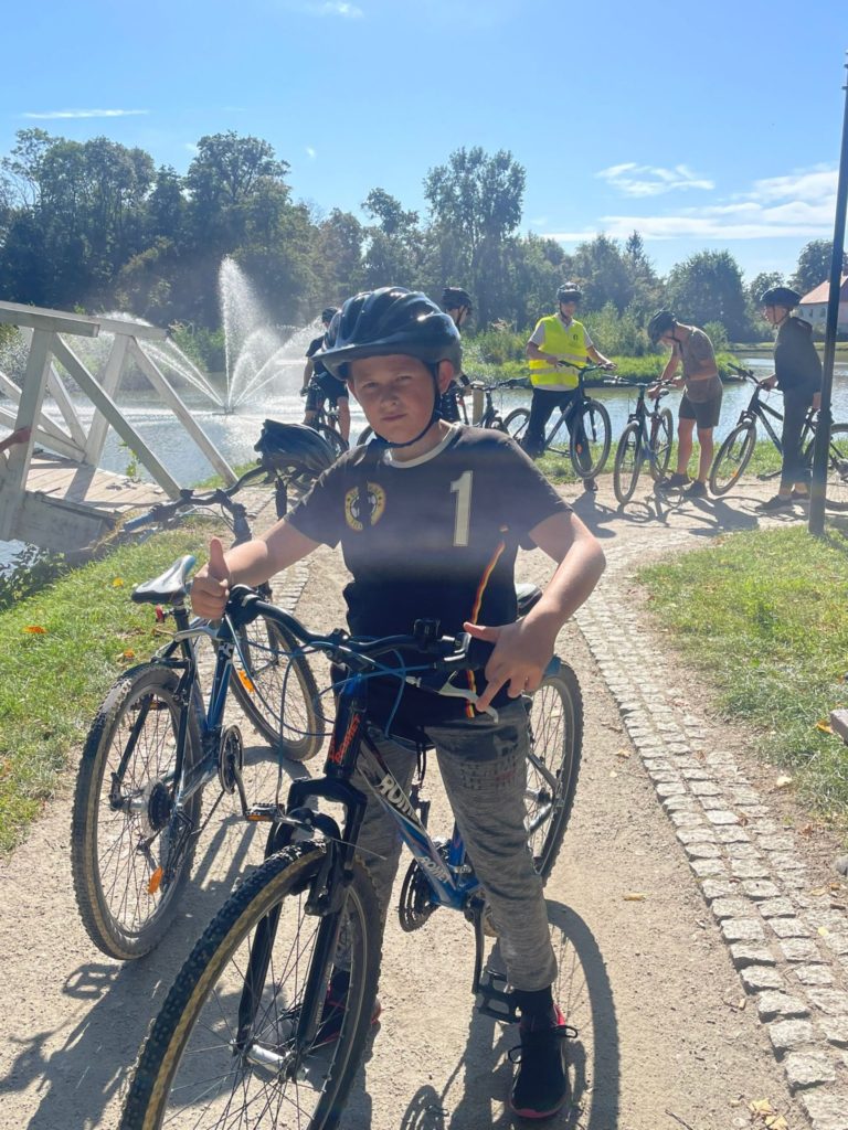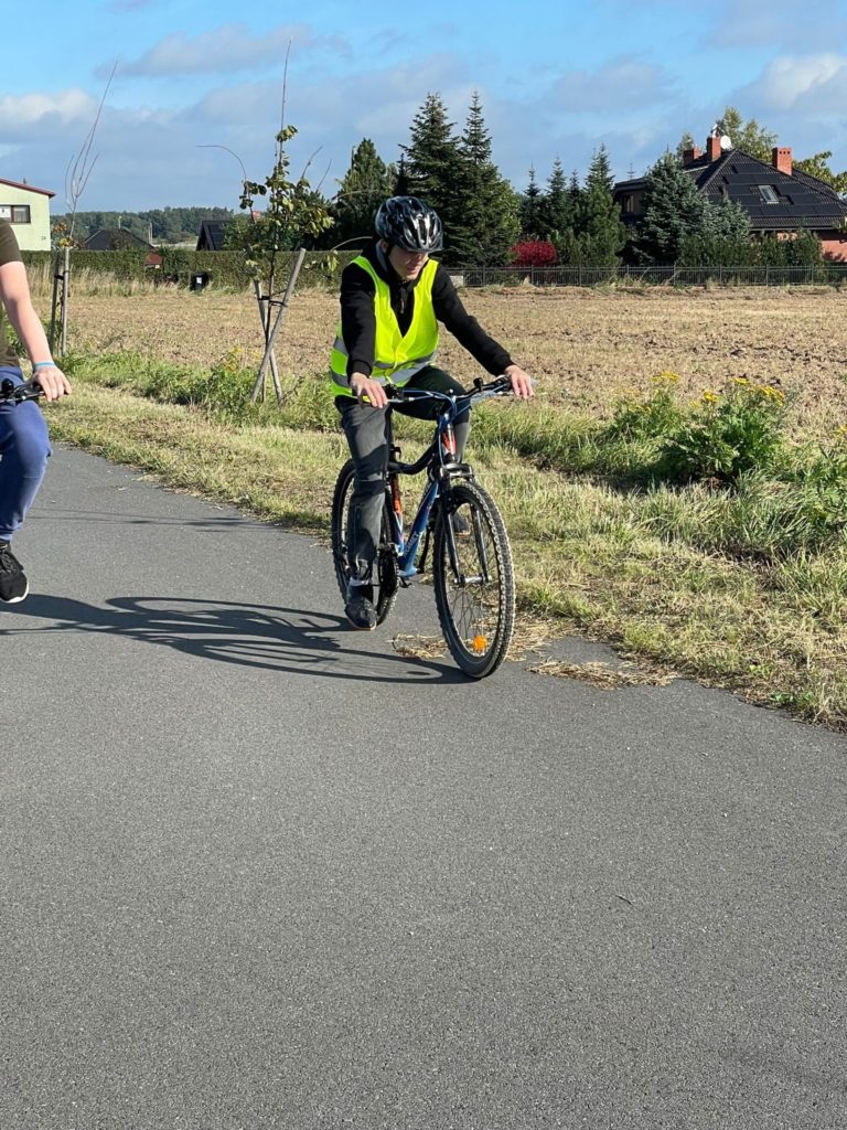 Ciesząc się z pięknej i słonecznej pogody oraz możliwości korzystania z rowerów, które posiada nasza placówka, uczniowie poszczególnych klas mogli w miesiącu wrześniu i październiku podczas lekcji w-f wybierać się na krótkie przejażdżki po bliższej i dalszej okolicy. Wyprawy te dały okazję do poznawania najbliższego środowiska, uczyły właściwego i bezpiecznego poruszania się rowerem, pozwalały popracować nad formą i sprawnością fizyczną a przede wszystkim dawały radość i pozwalały spędzić ze sobą czas w wesołej i pozytywnej atmosferze.