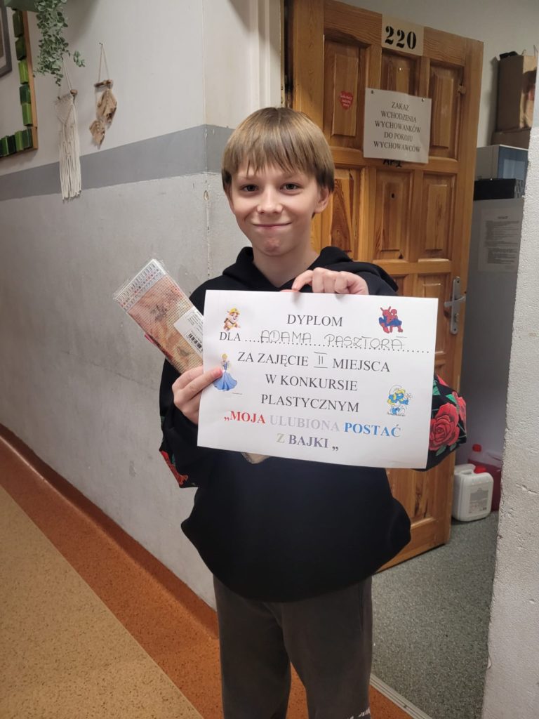 Konkurs, który był ogłoszony z okazji Międzynarodowego Dnia Postaci z Bajek cieszył się w Placówce ogromnym zainteresowaniem. Do jurorów wpłynęła rekordowa liczba prac i naprawdę trudno było wybrać laureatów, dlatego też tym razem nagrodziliśmy więcej osób niż zazwyczaj. Wszystkie prace były kolorowe, wesołe i wykonane z sercem – przedstawiały w końcu część dzieciństwa naszych wychowanków i wychowanek. Wszystkim, którzy brali udział serdecznie dziękujemy, a listę laureatów przedstawiamy poniżej: