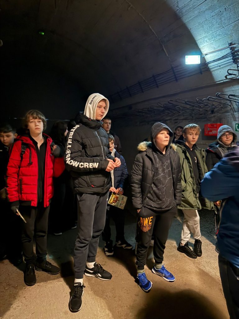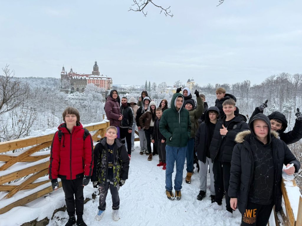 Wychowankowie Zespołu Placówek Resocjalizacyjnych w Brzegu Dolnym skorzystali z środków budżetu Samorządu Województwa Dolnośląskiego udzielonej w ramach programu pn. Poznaj Dolny Śląsk. W dniu 27.11.2025r. postanowili zrealizować zadanie rzetelnie i niezwykle szczegółowo poznając historię i walory Zamku Książ oraz korzystając z atrakcyjnych warsztatów w Strefie Odkrywania, Wyobraźni i Aktywności w Starej Kopalni w Wałbrzychu. Dzięki inicjatywie, która uatrakcyjniła znacząco proces edukacji, 24 wychowanek i wychowanków mogło poznać niezwykle bogatą historię Zamku Książ, który jest jednym z najcenniejszych zabytków Dolnego Śląska. Poznanie tajemnic rozpoczęliśmy od podziemi, gdzie powróciliśmy do czasów II Wojny Światowej. Ciekowość rozbudziła legenda „Złotego pociągu”, długo będziemy się jeszcze zastanawiać, gdzie ukryto wszystkie skarby. Bardzo wiele emocji wzbudził w nas spacer po tunelach z surowego betonu, których budowa pochłonęła zdrowie, a nawet życie wielu więźniów z obozu koncentracyjnego. Uczciliśmy ich pamięć chwilą ciszy. Po przejściu do Zamku Książ, rozpoczęliśmy odkrywanie kart historii od prezentacji dotyczącej dziejów Zamków, które sięgają XIII w. Wychowankowie wzięli udział w quizie przygotowanym przez nasza przewodniczkę – na wszystkie pytanie odpowiedzieli koncertowo, a ich wiedza została nagrodzona upominkami – alternatywne 5 z historii zdobyte. Spacer po zamkowych korytarzach był fascynujący; ciekawostki i legendy dotyczące zwiedzanej budowli, a także imponująca sceneria i interaktywne elementy, sprawiły, że chłonęliśmy wiedzę z zaangażowaniem, zachwycaliśmy się zdobionymi sufitami i zabytkowymi kominkami oraz podziwialiśmy rozmach obiektu. Jedną z najbardziej zapamiętanych postaci pozostanie Księżna Daisy, która wkładała ogrom serca nie tylko w urządzanie komnat i sal Zamku Książ, ale przede wszystkim udzielała się charytatywnie niosąc bezinteresowną pomoc. Takie wartości i cechy cenimy bardzo. Oczywiście nie mogło zabraknąć aktywności fizycznej i spaceru w książańskim parku krajobrazowym, który przywitał nas iście zimową aurą. Niestety nie udało się zabrać śniegu z nami. Musimy również pamiętać o rozwijaniu kreatywności i uzdolnień, które jest tak ważne dla naszego wszechstronnego rozwoju. Odwiedziliśmy SOWA – miejsce w którym każdy ma szansę rozbudzić w sobie artystę. Podczas warsztatów w Centrum Ceramiki Unikatowej wychowankowie mieli okazję zapoznać się z formą zdobienia ceramiki – kalkomanią. Po krótkim instruktażu rozpoczęli pracę nad swoimi niepowtarzalnymi talerzami, na których umieszczaliśmy indywidulane wzory. Świetna zabawa, a i pamiątka wyjątkowa.