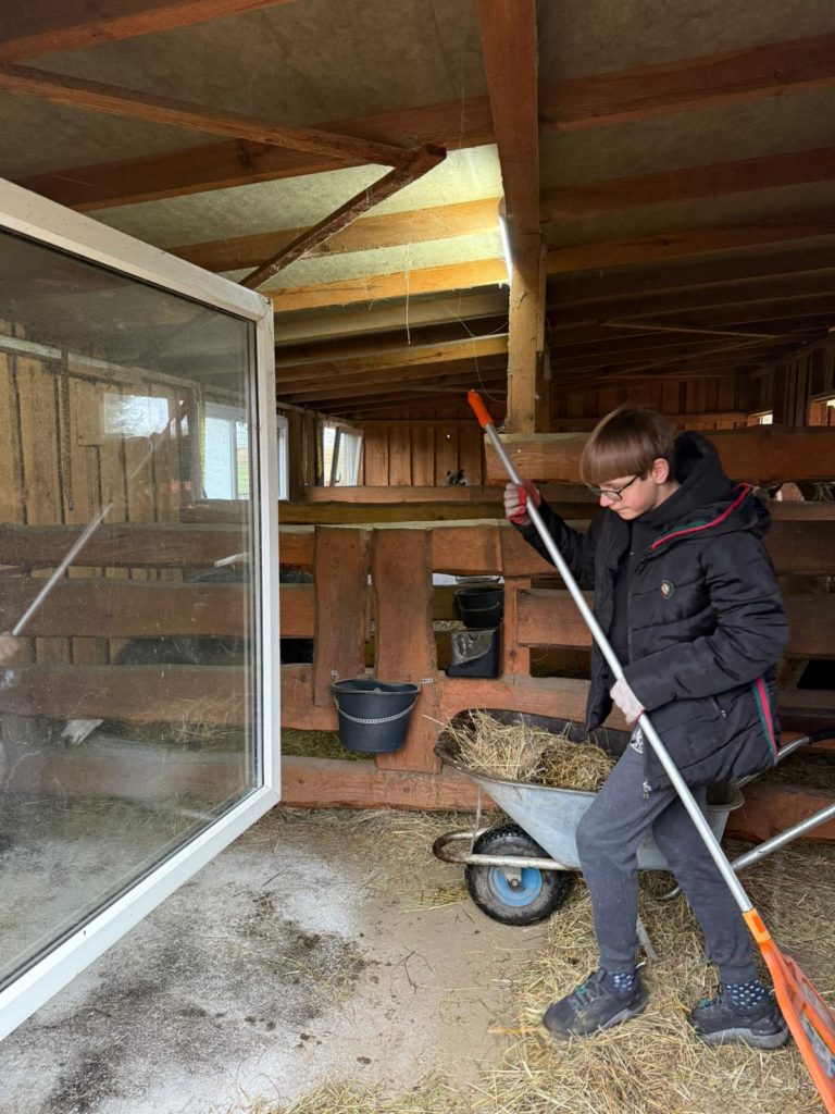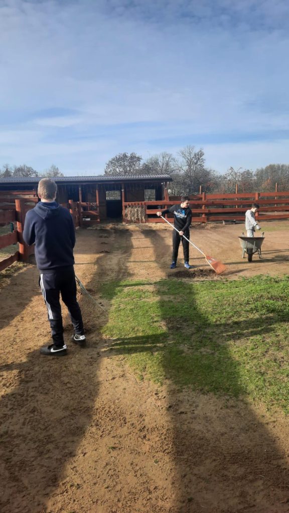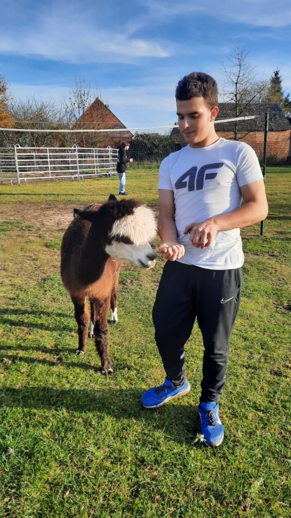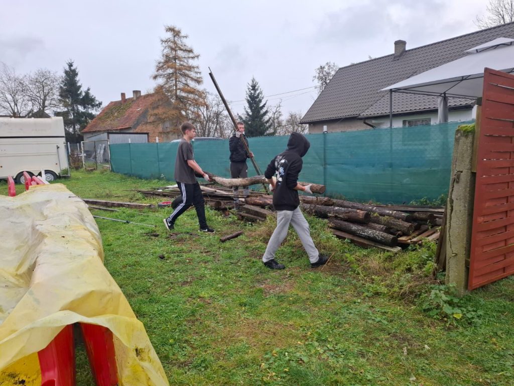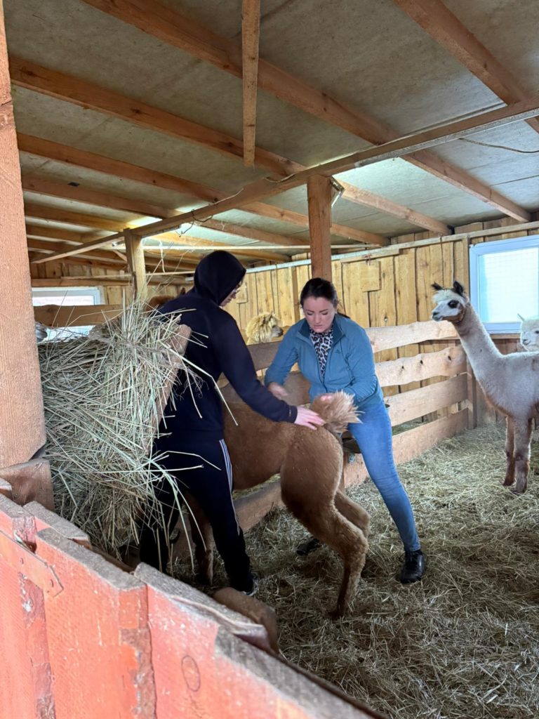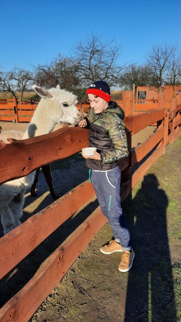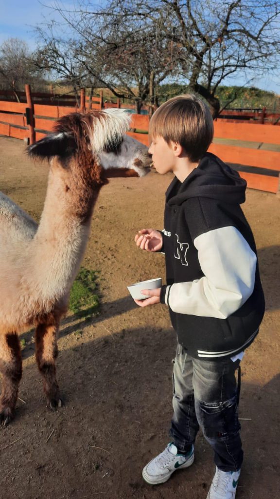 W ostatnich latach coraz większego znaczenia nabierają metody wychowawcze oparte na obcowaniu z naturą i pracą ze zwierzętami. Jednym z przykładów takiej terapii jest współpraca wychowanków Młodzieżowego Ośrodka Wychowawczego Nr 1 w Brzegu Dolnym z Ranchem Alpak w Prawikowie. To nie tylko atrakcyjna forma spędzania czasu, ale przede wszystkim wartościowy element procesu resocjalizacji, który realnie wpływa na rozwój młodych ludzi. W mijającym miesiącu grupa terapeutyczna uczestniczyła w zajęciach czterokrotnie. Dla naszej młodzieży kontakt z alpakami staje się często pierwszą okazją do zbudowania relacji opartej na zaufaniu i spokoju. Wychowankowie podczas wyjazdów podejmują się szeregu prac; karmienie i pojenie alpak, koni, królików oraz kotów, sprzątanie i przygotowywanie wybiegów oraz zagród, porządkowanie terenu oraz drobne prace remontowe – ostatnio układali kostkę i wzmacniali podłoże. Mają okazję pomagać przy zabiegach pielęgnacyjnych, co wbrew pozorom nie jest proste i wdraża do niezwykłej cierpliwości. Chłopcy wykorzystują swoją sprawność fizyczną i siłę by nieść bezinteresowną pomoc dla naszych przyjaciół z Prawikowa. Coraz częściej można dostrzec ich inicjatywę i samodzielność w działaniu. Systematyczność tych działań uczy młodzież konsekwencji, planowania dnia i sumienności. Wielu wychowanków po raz pierwszy doświadcza sytuacji, w której ich praca ma natychmiastowy, widoczny efekt – spokojne, ufne zwierzęta i czysty, bezpieczny teren. Praca na ranczu to nie tylko obowiązki – to również okazja do współdziałania. Wspólne zadania wymagają komunikacji, podziału ról i wzajemnego wsparcia. Kontakt z naturą ma szczególne znaczenie dla młodych osób, które wcześniej borykały się z trudnościami emocjonalnymi czy środowiskowymi. Cisza, otwarta przestrzeń i rytm dnia podporządkowany zwierzętom tworzą atmosferę sprzyjającą wyciszeniu i przemyśleniom. Dla wielu wychowanków to jeden z nielicznych momentów, kiedy mogą odciąć się od presji i napięć, które towarzyszyły im przed trafieniem do ośrodka. Oczywiście każdy wyjazd kończymy wspólnym grillowaniem czy tak jak ostatnio przy pysznej domowej pizzy Pani Doroty Mil.