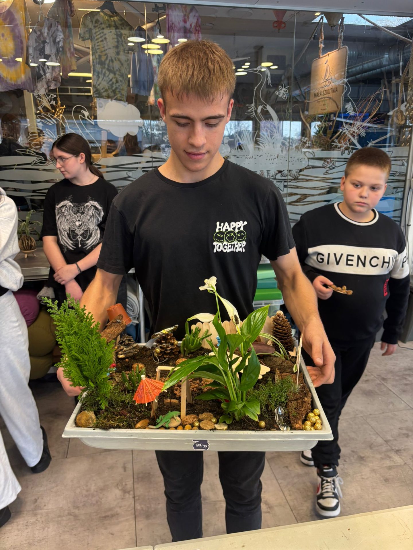 Warsztaty odbywały się w bezpiecznym i wspierającym środowisku, sprzyjającym zadawaniu pytań, wymianie myśli i wspólnemu działaniu. Na zakończenie uczestnicy stworzyli mini ogródek — symbol regeneracji, nadziei i nowego początku. Własnoręcznie wykonany ogródek został zabrany do placówki jako pamiątka wyjazdu oraz inspiracja do dalszych działań.