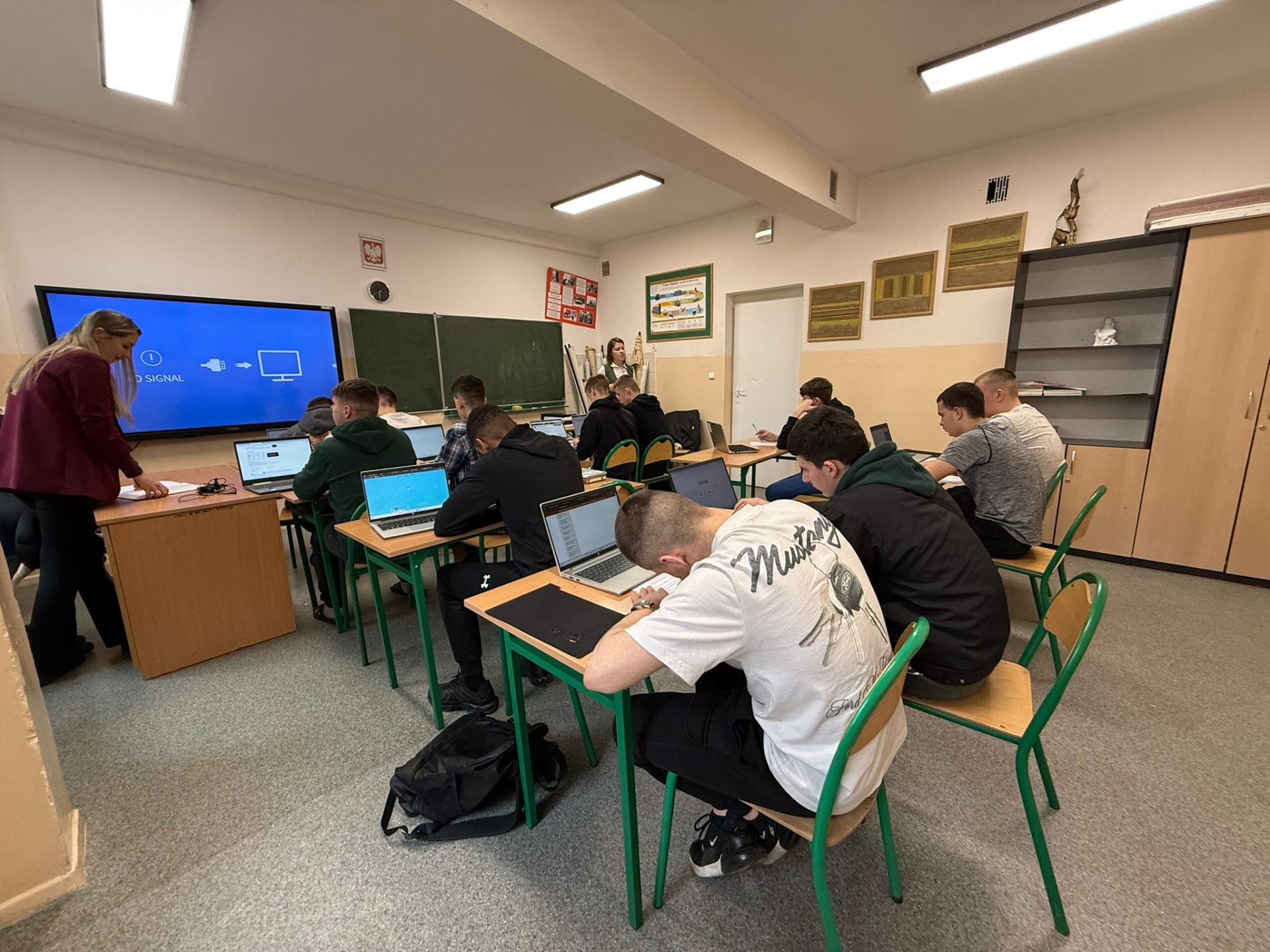 Rozpoczęcie kariery zawodowej przez uczniów 8B jest już momentem coraz bardziej realnym i ze zbliżającym się terminem. Prowadzone przez doradców zawodowych z Powiatowego Urzędu Pracy w Wołowie; Panią Sylwię Jaroniewskiej oraz Agaty Prośniewską poprowadzone zostały zajęcia warsztatowe mające na celu jak najlepsze przygotowanie naszych chłopców do wejścia na rynek pracy. Zajęcia składały się z dwóch bloków tematycznych; I Aktywne poszukiwanie pracy w Internecie. Korzystając z naszej mobilnej pracowni komputerowej uczniowie zapoznawali się z ofertami pracy. Zostali zapoznani ze strukturą oferty oraz dowiedzieli się, na które informacje należy zwrócić uwagę. W trakcie zajęć pojawiły się wątki związane z bezpieczeństwem oraz jak chronić się przed wyłudzaniem danych. II część była związana z Grą Eures, która wprowadziła uczniów w rynek pracy za granicą i możliwości skorzystania z tego typu ofert za pośrednictwem Urzędu Pracy. Poprzez grę zdobyli sporą wiedzę w tym zakresie.