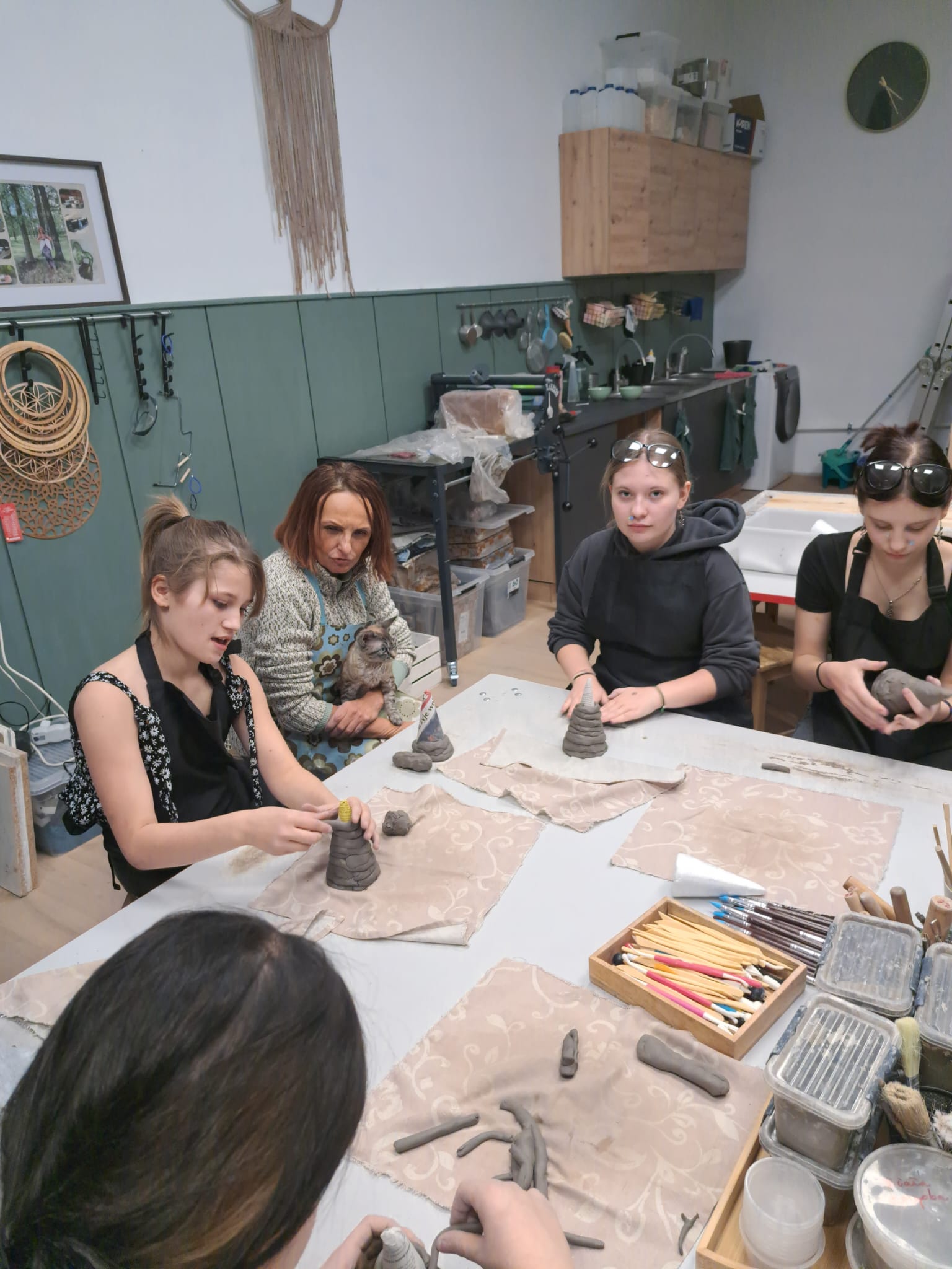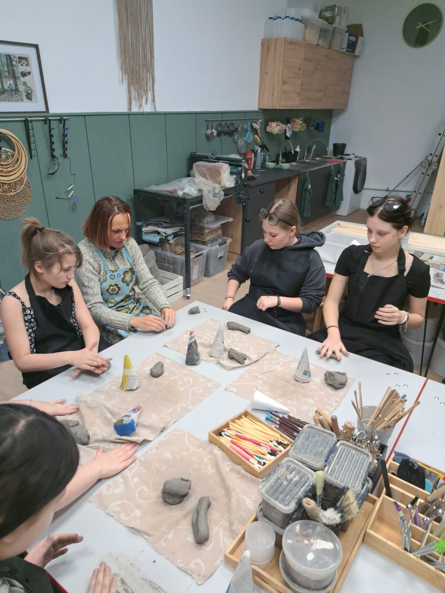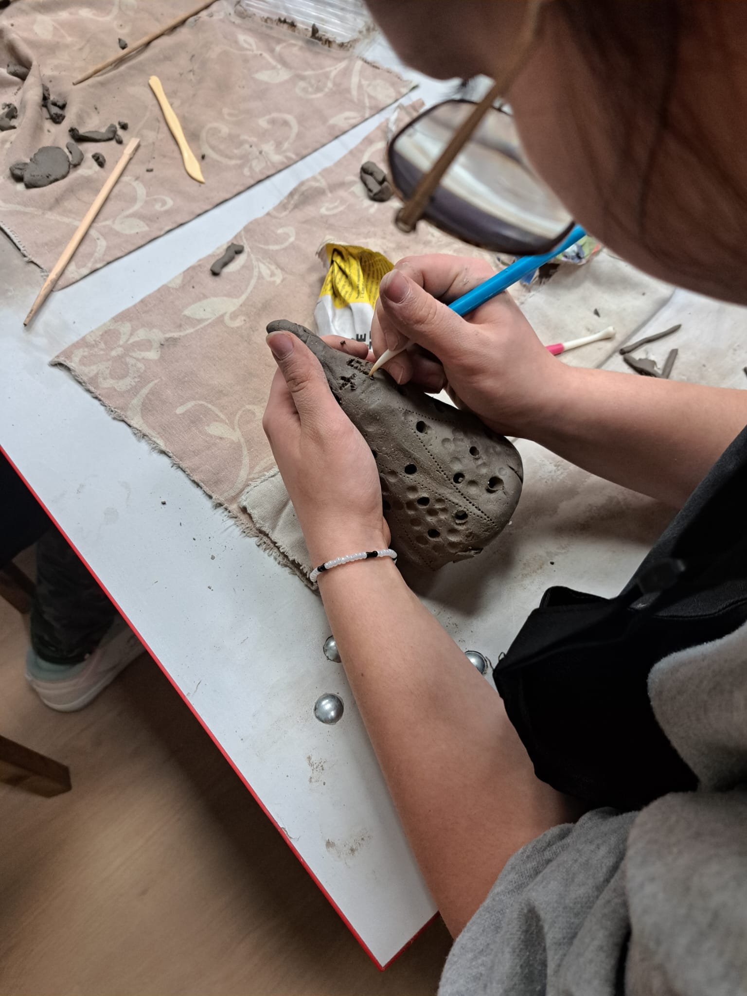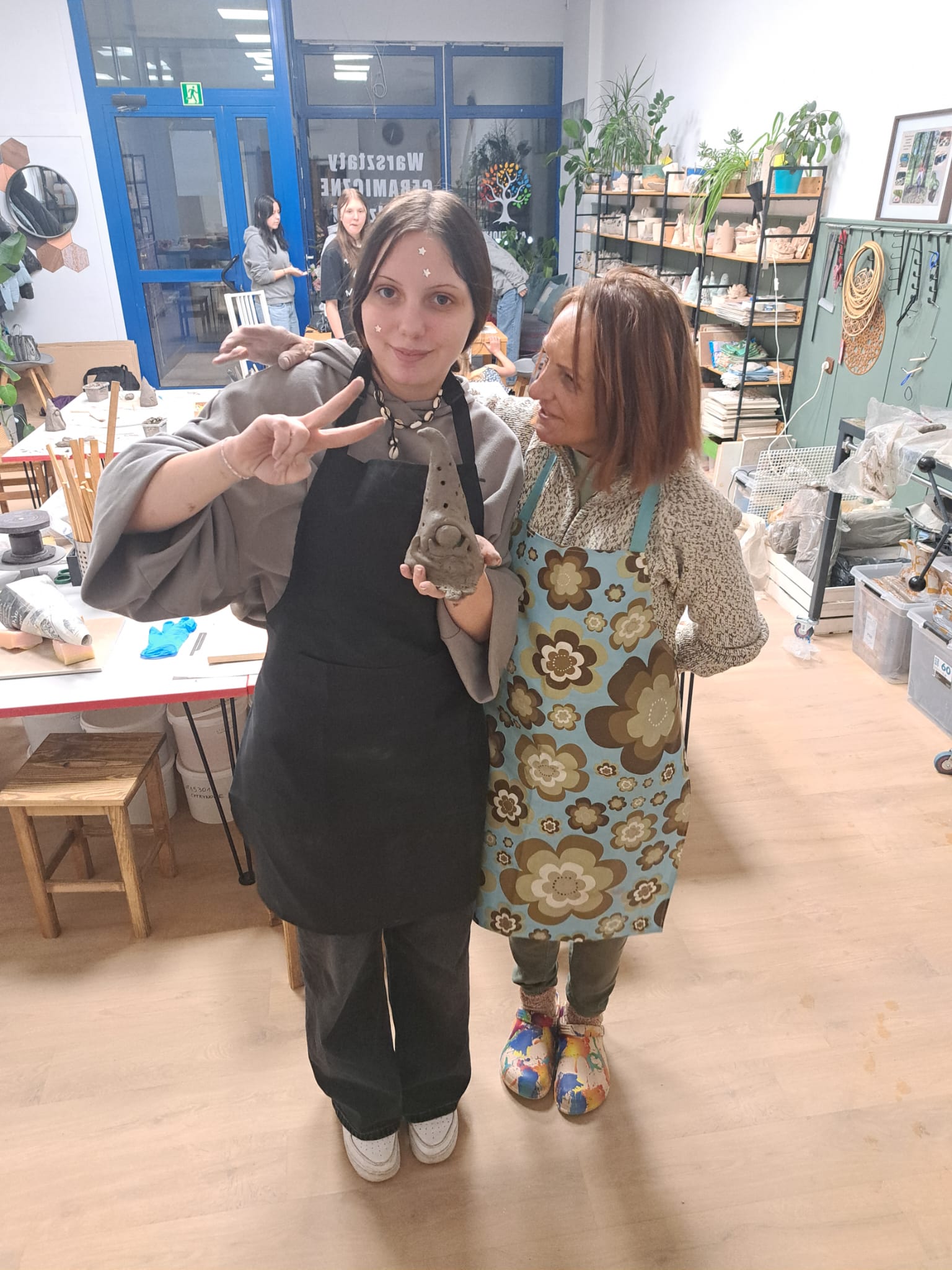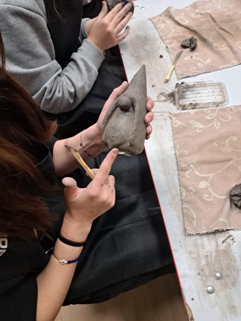 Dnia 22.11.2025r. w godzinach popołudniowych odwiedziliśmy pracownię Ceramiczną „4 Żywioły”, dzięki uprzejmości p. Edyty Górnickiej, mogliśmy uczestniczyć w warsztatach ceramicznych wraz z grupą III Młodzieżowego Ośrodka Wychowawczego Nr 2. Wychowanki wykonywały krasnale z gliny już w tematyce świątecznej. Ręcznie lepione figurki były pełne charakteru i humoru. Miały przysadziste sylwetki, spiczaste czapki, duże nosy i bujne brody. Po wyschnięciu i wypale można je będzie pokryć szkliwem – matowym lub błyszczącym – co nada im koloru i trwałości. Każdy krasnal będzie niepowtarzalny, bo powstał z odcisku dłoni twórcy i spontanicznych decyzji podczas lepienia. Przy pracy towarzyszyła nam przemiła atmosfera, którą stworzyła sama pani prowadząca p. Edyta. Wychowanki były zachwycone, że mogły uczestniczyć w tak ciekawych zajęciach.