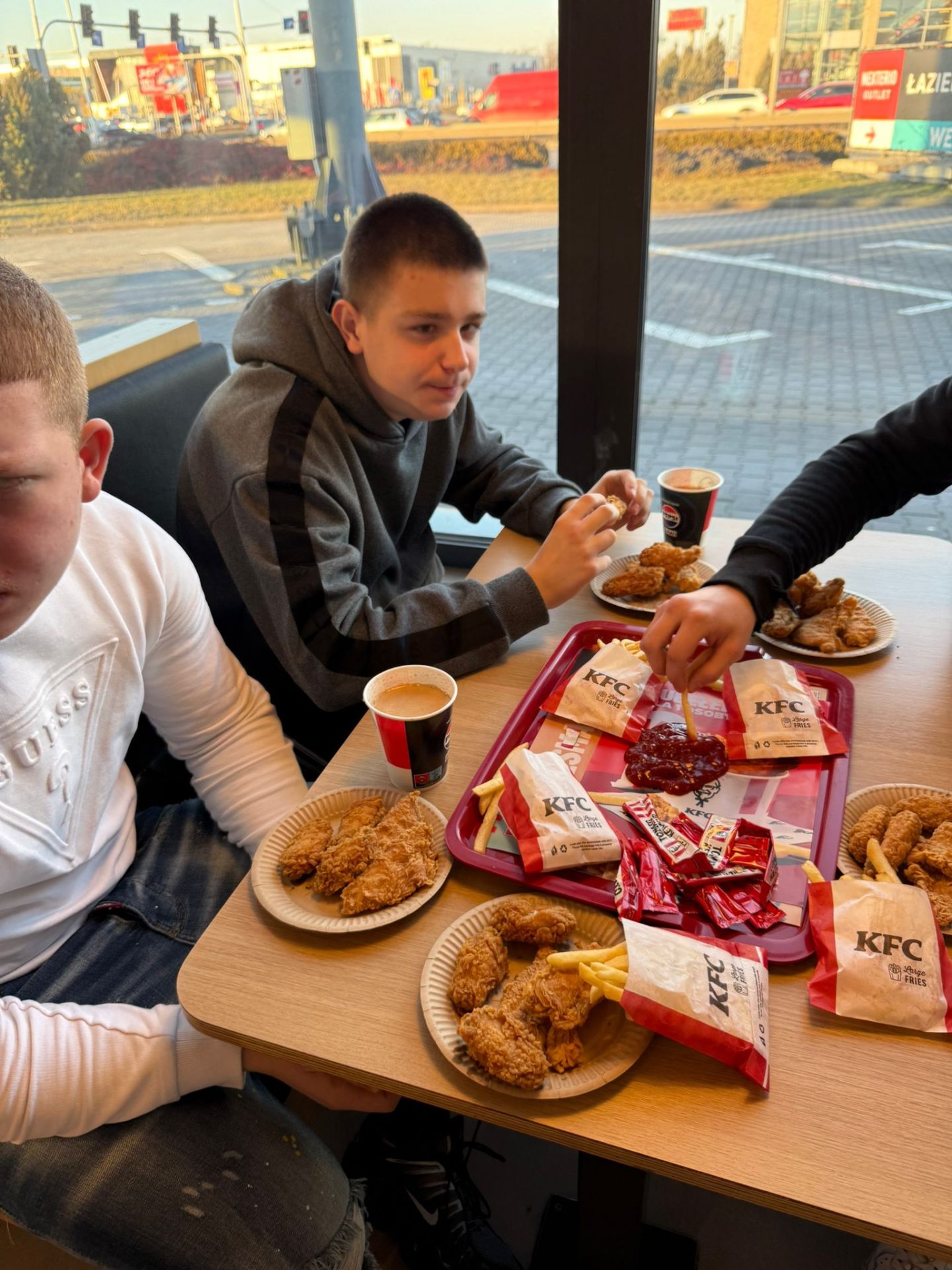 W dniu 21.01.2026r. wychowankowie Zespołu Placówek Resocjalizacyjnych w Brzegu Dolnym uczestniczyli w niezwykłej przygodzie – spotkanie z Alicją w Krainie Czarów w blasku migotających światełek w Luminapark we Wrocławiu. Światło i kolor oraz dźwięki tworzyły bajkową atmosferę sprzyjającą podróży za uciekającym królikiem. Wychowankowie kroczyli ścieżkami Alicji odkrywając coraz to nowe miejsca i postacie. Dłuższy przystanek odbył się przy magicznej karuzeli. Następnie interaktywna gra w węża i chwila prawdy od magicznego lustra. Dużo frajdy sprawił labirynt – kręty i podstępny, na szczęście Tomek odnalazł wyjście, więc zasłużenie zasiadł na tronie w zamku. Wizyta w Luminaparku to świetna atrakcja wizualna, rozwijająca zmysły oraz pobudzająca wyobraźnię. Dla wielu osób była inspiracją do rozwijania własnej kreatywności i zainteresowań artystycznych. Szczególnie zachwycony kotami był Wojciech, natomiast Zlatoslava była zachwycona każdym jednym szczegółem – od magicznych sów, poprzez parasole, biegające mrówki, na parujących imbrykach kończąc. Spacer, to także okazja do wielu rozmów i integracji grupy. Śmiechu było, co nie miara i pozytywny nastrój towarzyszył każdemu uczestnikowi. W planie wycieczki oczywiście przystanek na posiłek. Dziękujemy Panu Adamowi Borowikowi z KFC za darmowe zestawy oraz życzliwą atmosferę.