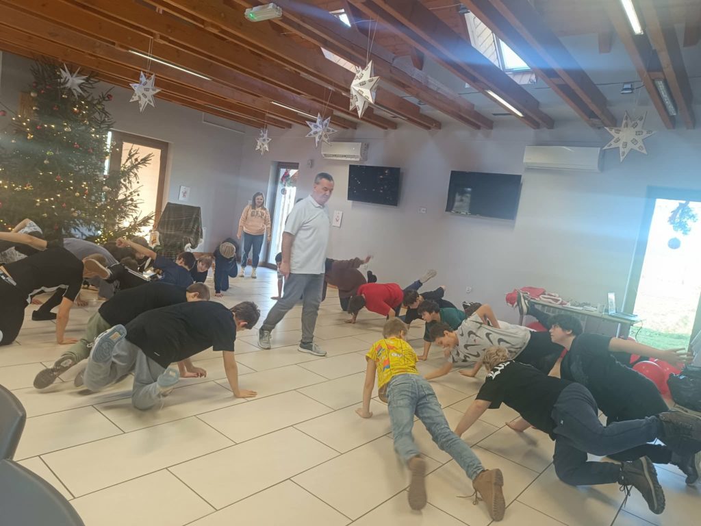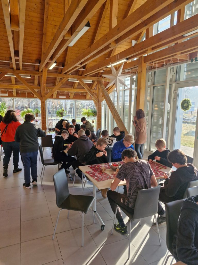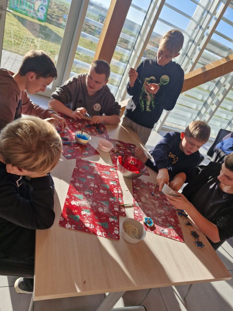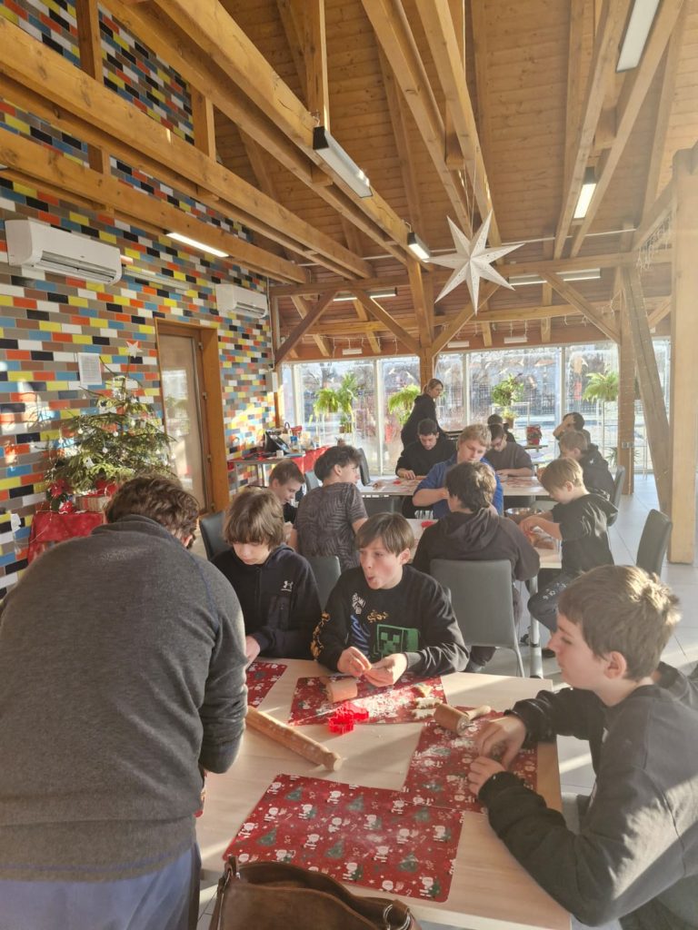 W dniu 18.12.2025r. Uczniowie Młodzieżowego Ośrodka Socjoterapii wybrali się wraz z opiekunami na wycieczkę do Regionalnego Ośrodka Edukacji Ekologicznej w Dziewinie. W trakcie wyjazdu chłopcy wzięli udział w warsztatach integracyjnych, gdzie podczas doskonałej zabawy i w radosnej, świątecznej atmosferze mieli możliwość zintegrować się ze sobą, zacieśnić więzi, a przede wszystkim dobrze bawić. Chłopcy wraz z opiekunami doskonalili swoje umiejętności taneczne, brali udział w świątecznym quizie, a także stoczyli bitwę na ,,śnieżki”. Uśmiechy z ust uczestników warsztatów. Nie schodziły, ani na moment, a nawet najwięksi początkowo maruderzy dołączali do zabawy. W drugiej części warsztatów chłopcy robili pyszne pierniki, które po upieczeniu samodzielnie dekorowali. Warto wspomnieć, że pierniki smakowały i wyglądały tak apetycznie, iż znaczna część z nich została zjedzona już na miejscu i pomimo początkowych planów nie dojechała nawet do Placówki(!). Bardzo dużą niespodzianką dla chłopców była także wizyta Świętego Mikołaja z drobnym upominkiem, ale chyba nie ma się co dziwić w końcu nasi uczniowie to zazwyczaj bardzo grzeczne dzieci. Na koniec mieliśmy możliwość spróbowania pysznego barszczu z uszkami, pierogów, pasztecików i przepysznych deserków. Podsumowując, wycieczka była niezwykle udana i obfitowała w momenty pełne śmiechu i świątecznej magii.